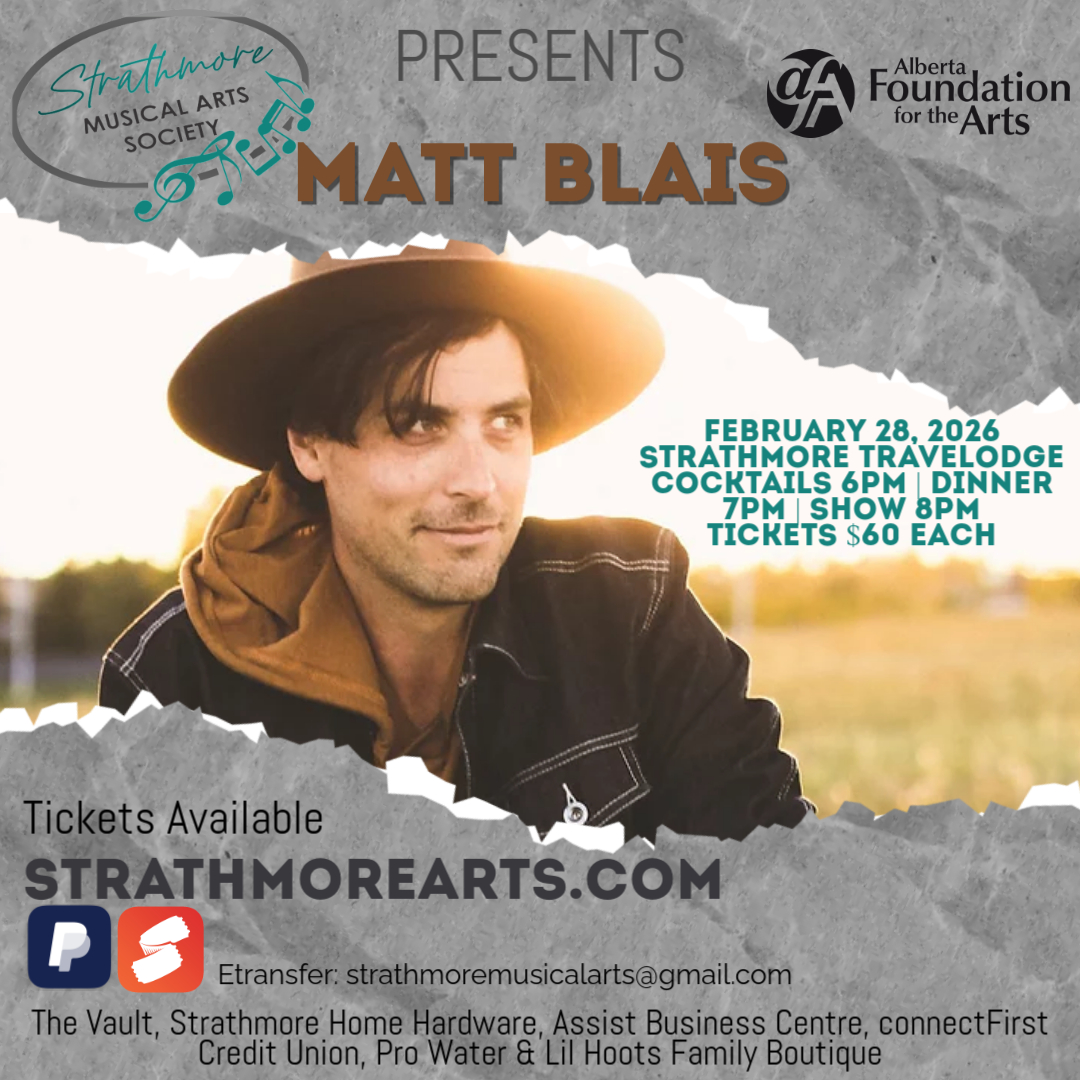 Tickets can also be purchased at one of our valued community partners: Strathmore connect First Credit Union, Strathmore Pro Water, Strathmore Home Hardware, Assist Business Centre, The Vault Cultural Collective, Lil Hoots Family