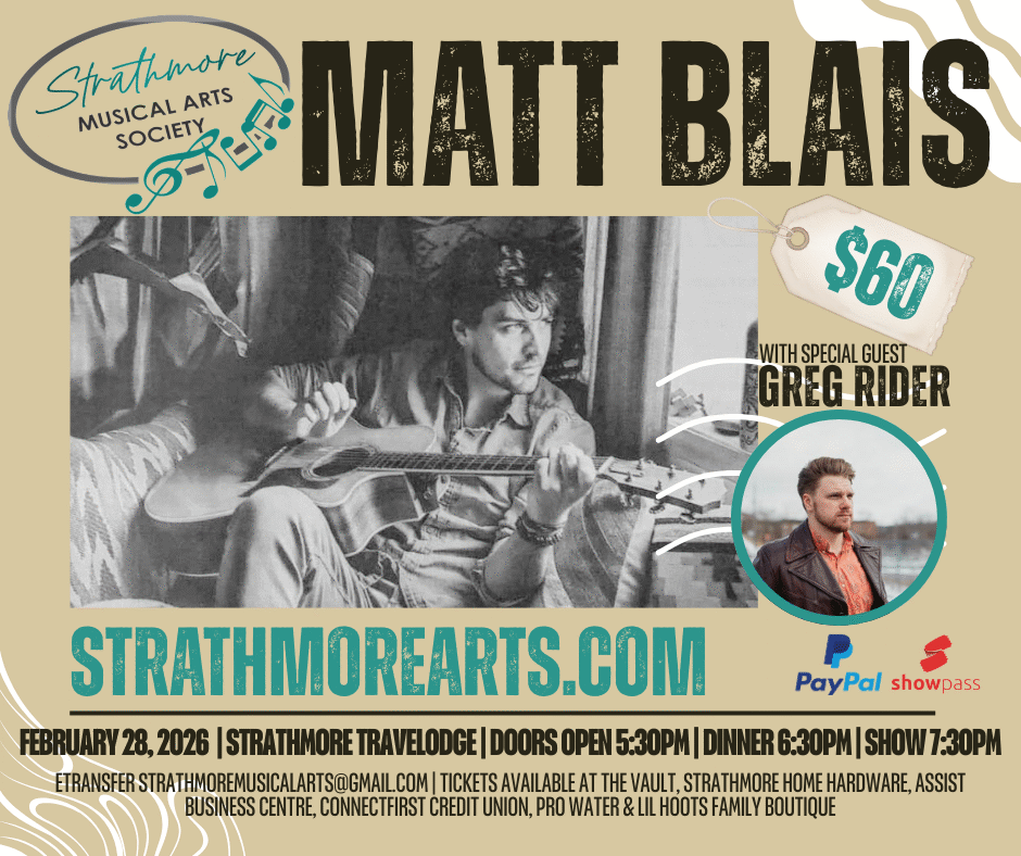 Tickets can also be purchased at one of our valued community partners: Strathmore connect First Credit Union, Strathmore Pro Water, Strathmore Home Hardware, Assist Business Centre, The Vault Cultural Collective, Lil Hoots Family